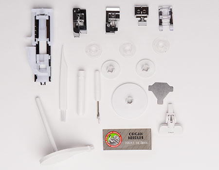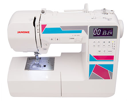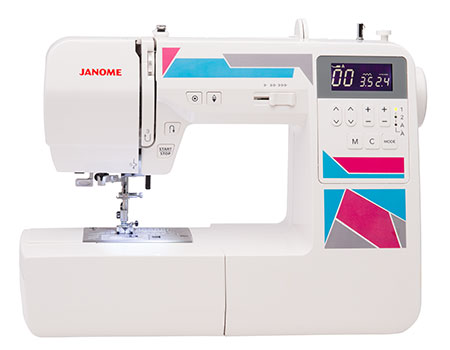 The Janome MOD-200 computerized sewing machine is the perfect machine to tackle your next sewing project. The machines cutting-edge technology ensure that projects are conquered with power, precision and confidence. Utilize the Janome MOD-200 sewing machines built-in needle threader, memory function, auto-declutch bobbin winder and 7mm stitch width. The backlit LCD screen with easy navigation buttons make choosing stitches a breeze. The specialty metal needle plate is a dealer-level feature that ensures smooth fabric feeding. The Easy Convenience buttons are located right by the needle, youll find a start/stop button for sewing without the foot control and a reverse button. There is also a locking stitch button and needle up/down button. The Janome MOD-200 advanced sewing machine features basic technology that is perfect for the starting DIY sewist, but can handle a variety of tasks demanded from an experienced user. Bonus Accessories like the Hard Cover, Blind Hemming Foot and Overedge Foot provide you with a great value bundle.