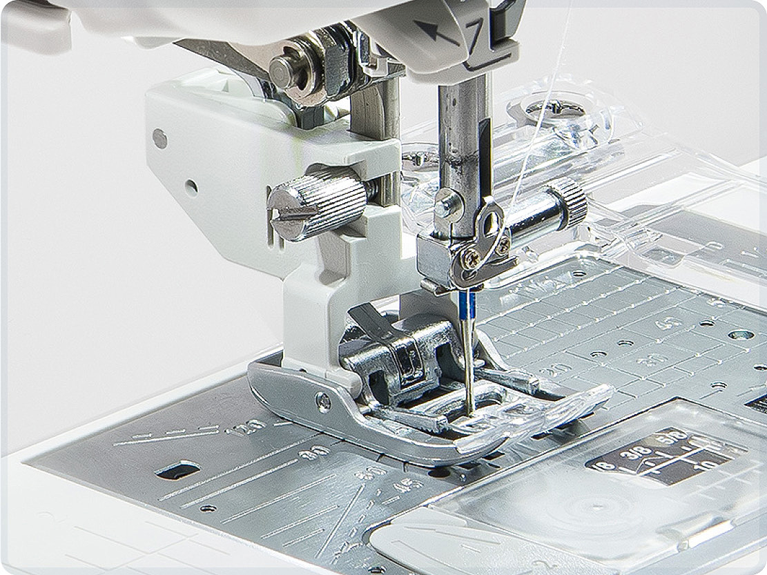Threading could not be easier. Set your thread, push the lever, release, and sew. The Enhanced Superior Needle Threader’s advanced design feeds the thread through the eye of the needle.