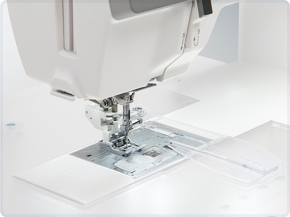 The sewing head and needle area are sleek and trim so you can easily see as you work.