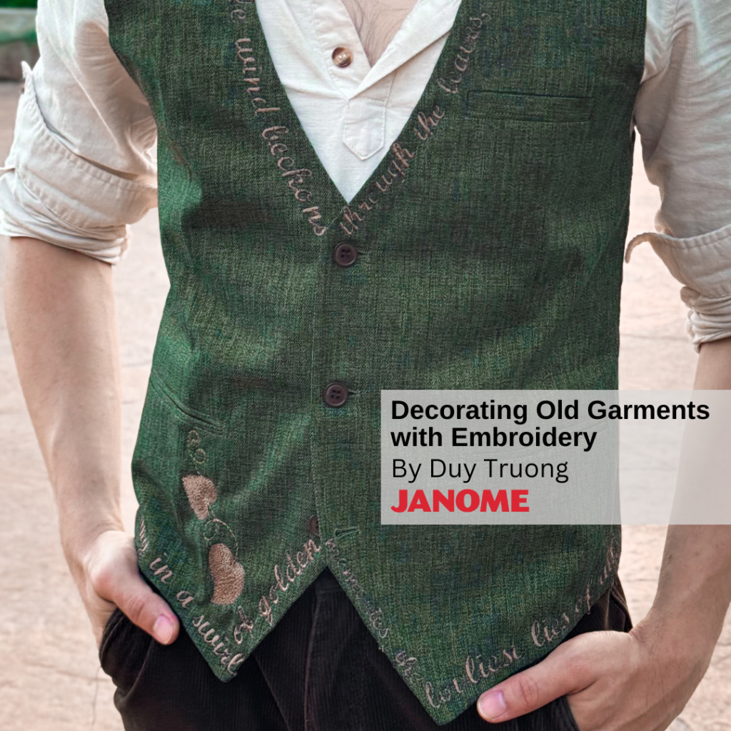 Today we’ll be focusing on making use out of plain old garments with embroidery, thanks to our Janome embroidery machines!