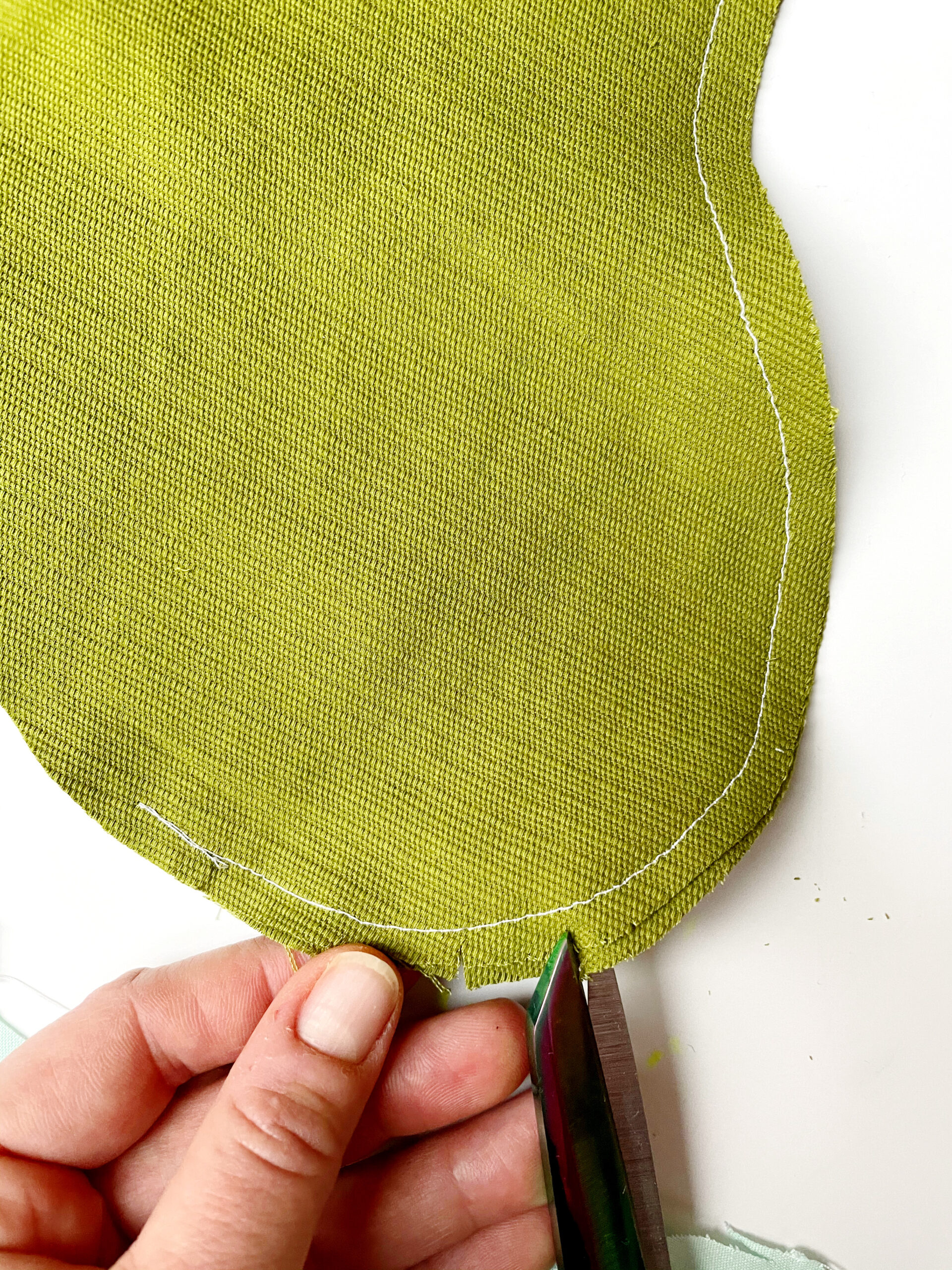 5. With both the inside and outside panels, edge clip the curved bottom portions of the stocking.