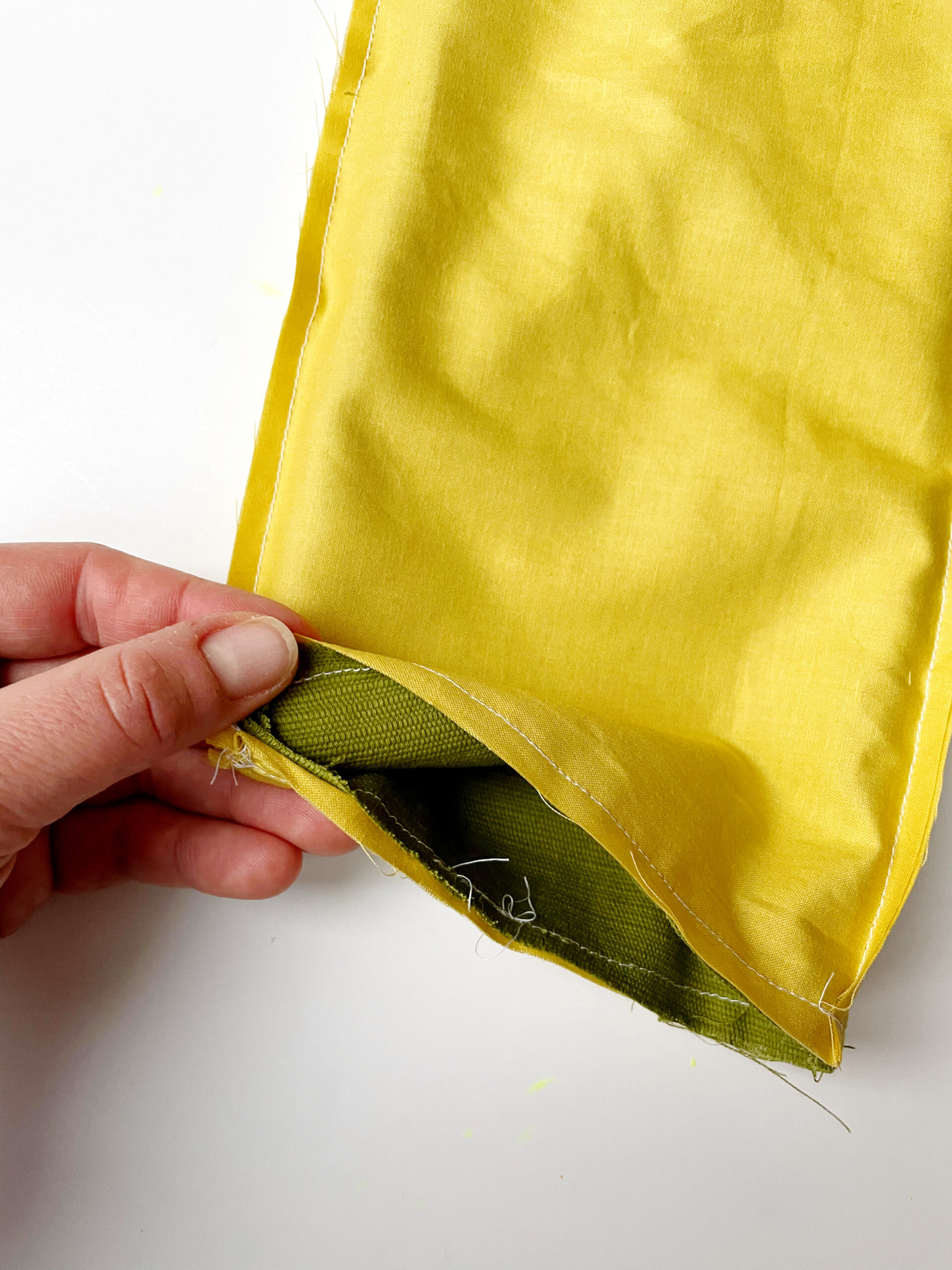up on both panels and the top edges line up as best as possible. then stitch a 1/4” seam across