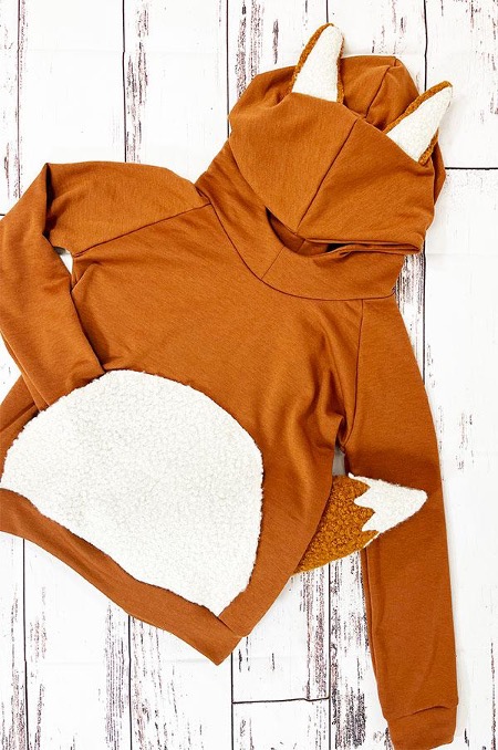 Halloween is right around the corner and I promised my fox-loving niece I would make her something foxy, so today I am going to show you how to easily sew a dress-up hoodie for kids. I will be using the Mouse House Creations Dress Up Hoodie Sewing Pattern, sweatshirt fleece, my Janome AirThread 2000D serger, and my Janome S9 sewing machine for construction. Let’s get started!
