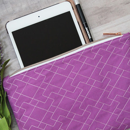 This large zipper pouch is perfect for your iPad Mini, sewing supplies, traveling trinkets or anything that you need to take with you or store together. And this tutorial offers a great embroidery tips using the new Janome 550E.