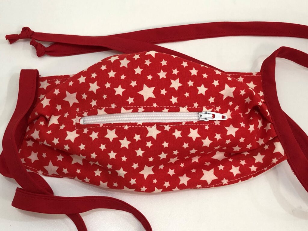 A functional mask for your growing collection! This zipper mask is just what you need when you are wearing a mask, but need to refuel with a snack or frosty beverage. Open and close the small zippered opening instead of removing or shifting your mask regularly.