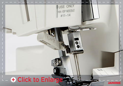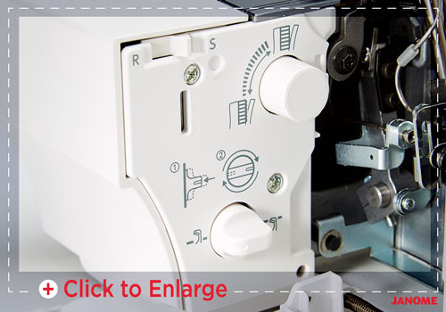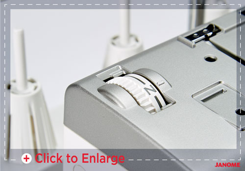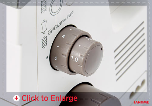 The Stitch Length Adjustment and Differential Feed Adjustment have been integrated into 1 dual function dial. Easily grip the textured dials to change your stitch length any time (even while sewing) to get stitches between 1.0-5.0mm. The unique differential feed device prevents fabrics from puckering, lets you adjust the stretchiness of our stitching as you sew, and enables you add ready-to-wear effects to your sewing. Adjustable from 0.5-2.0mm.