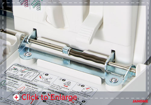 Tedious threading of upper and lower loopers are a thing of the past. Simply insert thread into the specially designed ports and your thread is transported to where it needs to be with an easy push of a lever.