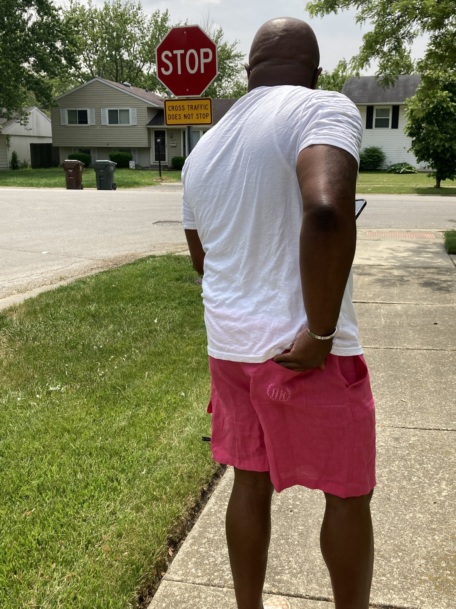 My husband and his nephew (Allen) have a special relationship. I heard about it back when we were dating. Because he lived in another state, I didn’t actually meet him until years after we were married. Well, recently within the last three years he has really been very present in our lives. He has a very kind demeanor and will do anything for my husband. Let’s say he’s more like a younger brother to us than a nephew. Anyhoo, he is quite stylish and a “Label” man. He wears Gucci, Ralph, Louie and buys expensive cologne. So, imagine my surprise when he mentions to me – Auntie, I want some fuchsia shorts!
