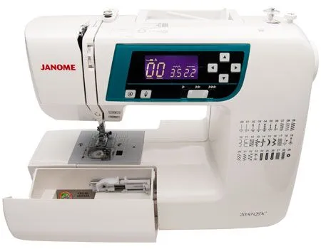 The 2030QDC-B showcases the amazing quality you associate with Janome heritage. It contains a variety of features normally found only on more expensive models, including a 7mm stitch width, LCD display with easy navigation, and a one-hand needle threader. The machine offers 30 built-in stitches and 3 one-step buttonholes. Easy convenience features include a start/stop button, speed control slider, auto-lock button, memorized needle up/down, and easy reverse. It is lightweight for easy portability at just 12 pounds.