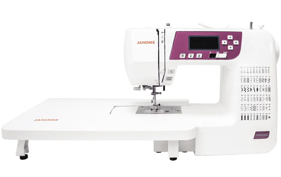 A full-featured machine made with a quilter’s needs in mind, the 3160QDC-G will deliver all the benefits of a top-of-the-line model, and at an affordable price. You’ll find 60 stitches including 6 one-step buttonholes. Janome’s Exclusive Superior Plus Feed System offers specialized box feeding on top of Janome’s SFS system, ensuring even, stable feeding with any fabric. And the time-saving features including memorized needle up/down, built-in needle threader, and lock stitch button make sewing easy. The Grapevine color featured on these machines is both trendy and timeless. Best of all, this full-size machine weighs only 12 pounds, so it is easy to take to classes and guild meetings!