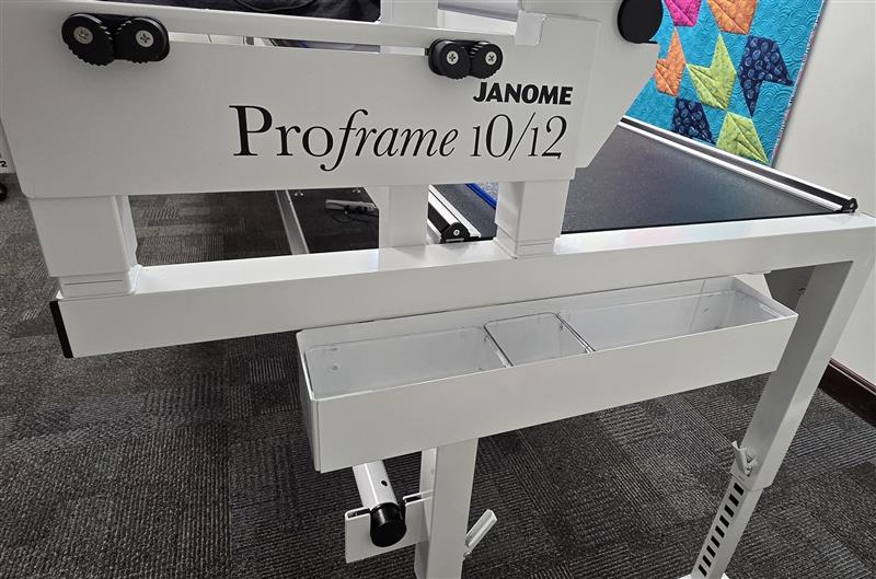 Contact SupportThe Janome ProframeV2 Accessory/ Tool Tray is a practical addition to your quilting setup, offering a convenient storage solution for your tools and accessories. The tray measures 17.5” in length, 3” in width, and 2.5” in height, providing ample space to keep your essentials organized and within reach. The kit includes the tray itself, installation hardware, four plastic tray organizers, and detailed instructions, ensuring a straightforward setup. Designed for versatility, the tray can be installed on either side of the ProframeV2.