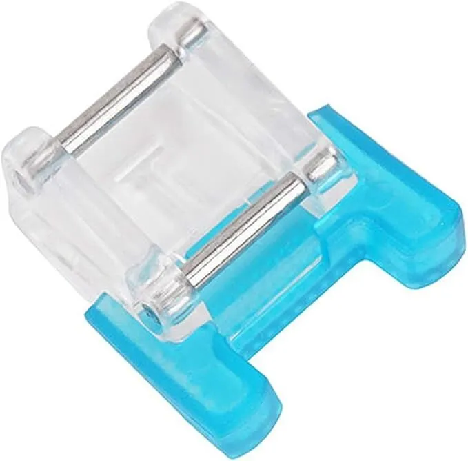 Contact SupportQuick and easy button sewing with the special button sewing foot. This foot has two bars that attach to the foot shank to provide extra stability and also has a textured, rubber sleeve to hold the button secrely in place while sewing.