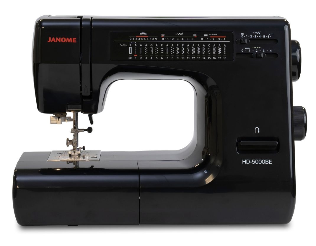 The HD-5000 Black Edition is a heavy-duty machine, perfect for a beginner or sewist looking to do a wide range of sewing. A handy instructional guide is located in the top tray door of the machine, which indicates the feet and stitch settings for a variety of sewing tasks. Heavy-duty aluminum body and 18 stitches, including a one-step buttonhole, give you the tools you need to handle any kind of sewing project. Stitch length and width adjustment are conveniently located on the front of the machine, and a hardcover comes standard for easy storage.