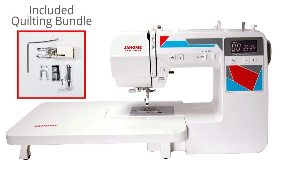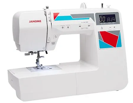 The Janome MOD-100Q computerized sewing machine is the perfect machine to tackle your next sewing or quilting project. The machines cutting-edge technology ensures that projects are conquered with power, precision, and confidence. Utilize the Janome MOD-100Qs sewing machines built-in needle threader, presser foot lift, auto-declutch bobbin winder, and 7mm stitch width. The backlit LCD screen with easy navigation buttons makes choosing stitches a breeze. The Easy Convenience buttons are located right by the needle, youll find a start/stop button for sewing without the foot control and a reverse button. There is also a locking stitch button and needle up/down button. The Janome MOD-100Q advanced sewing machine features basic technology that is perfect for the beginner sewist but can handle a variety of tasks demanded by an experienced user.