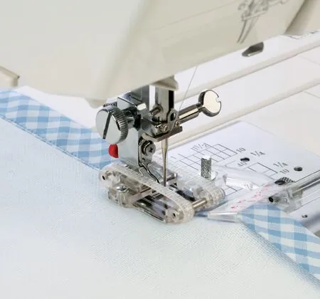 Contact SupportFor use with all sewing machines, the rotary foot is effective for preventing stretchy fabrics, jersey and knitted fabrics and hard to feed materials, like leather or vinyl from slipping or puckering. The foot also allows left-right tilt and its caterpillars independently grip the fabric for perfect feeding along areas where there is a height difference between the left and right sides of the needle especially when hemming thicker fabrics.It comes with: blind Hem attachment, Bias Tap attachment, Wide rolled hem attachments