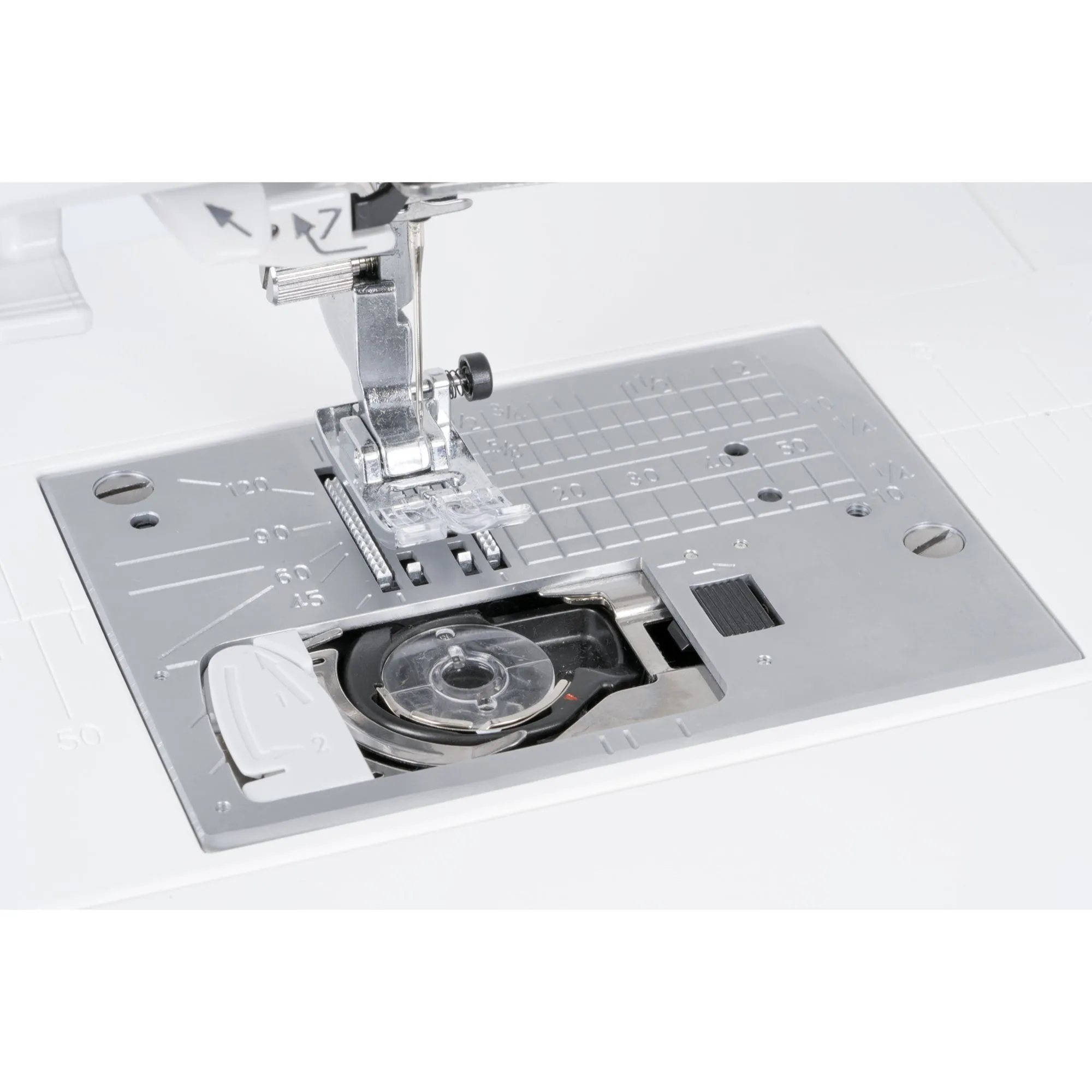 Janome’s Superior Feed System Plus features a 7-piece feed dog to ensure that even the thickest, multi-layer projects can move under the needle with precision and ease. The Skyline S3 AE’s patented needle placement accuracy includes special plate markings that indicate needle drop position, provide angle marks, and act as front-of-the-foot guides. In addition, the needle can be moved into 15 unique positions to get pinpoint accuracy for decorative stitching, applique, and free-motion quilting.