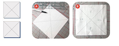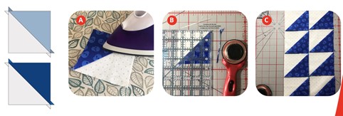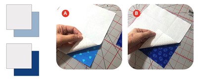 - Place (1) White and (1) blue square with right sides together (you will work with two pairs)