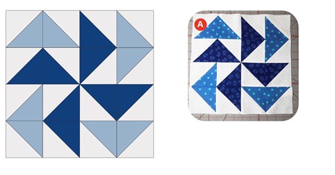 This month we will make our fourth block. The Dutchman’s Puzzle is a classic design that first appeared in the late 1800s. Return of the Swallows or Dutchman’s Wheel are two names for this block. About 1895, the term Dutchman’s Puzzle was first used by the Ladies Art Company, a mail-order quilt pattern company. The pattern, titled Wheel, was first published in the Ohio Farmer in 1894.