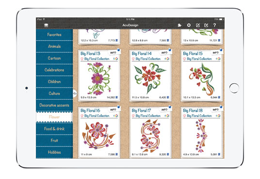 AcuDesign is the embroidery app that gives you the ability to import stitch designs from various sources and modify them anywhere, anytime—even when you’re not connected to the Internet: personalize your designs using your iPhone/iPod or iPad to combine the right fabric and thread colors, choosing the design style that suits your project, as easy as pressing a button.