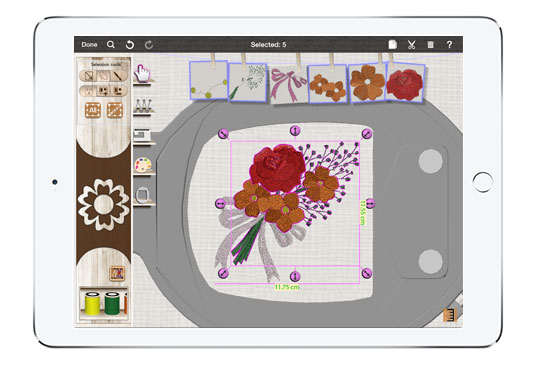 Use the in-app tools to style your embroidery designs. Easily customize each of the designs to resize, change thread color and stitch-out order.